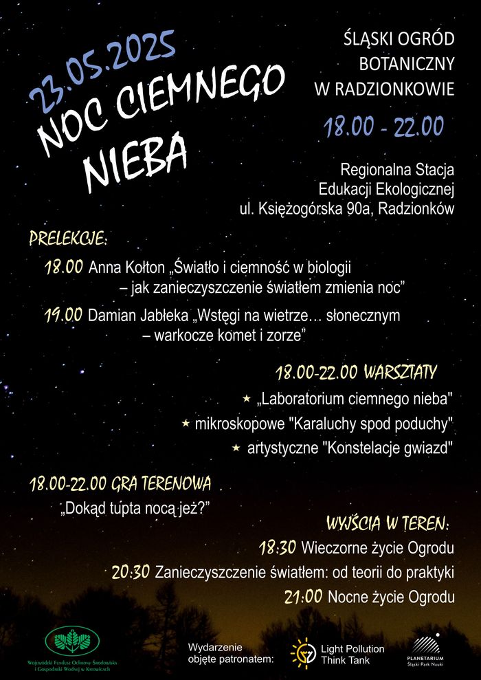 Przyjdźcie i posłuchajcie co fachowcy mają w tej sprawie do powiedzenia. Śląski Ogród Botaniczny w Radzionkowie ponadto przygotował wieczorno-nocne wycieczki przyrodnicze, warsztaty mikroskopowe oraz dla najmłodszych - artystyczne. Nie zabraknie, oczywiście, gry terenowej z nagrodami.