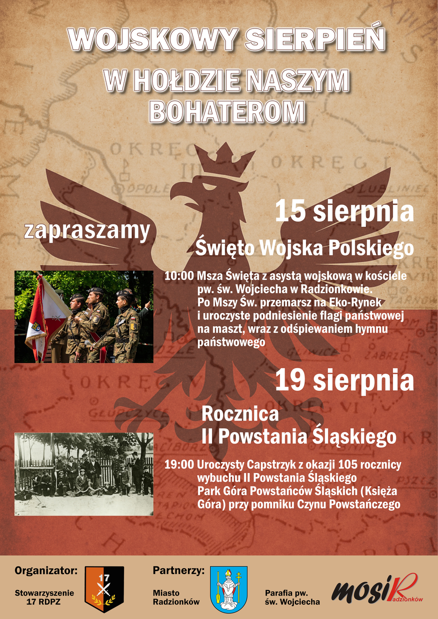Stowarzyszenie 17 Radzionkowska Drużyna Piechoty Zmechanizowanej zaprasza na obchody Święta Wojska Polskiego.