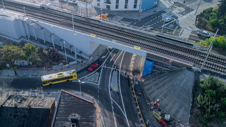 Od dziś w tym rejonie: - koniec objazdów dla kierowców w tym objazdów dla komunikacji miejskiej - lepsza organizacja ruchu pod wiaduktem - pełna przejezdność dróg w rejonie inwestycji