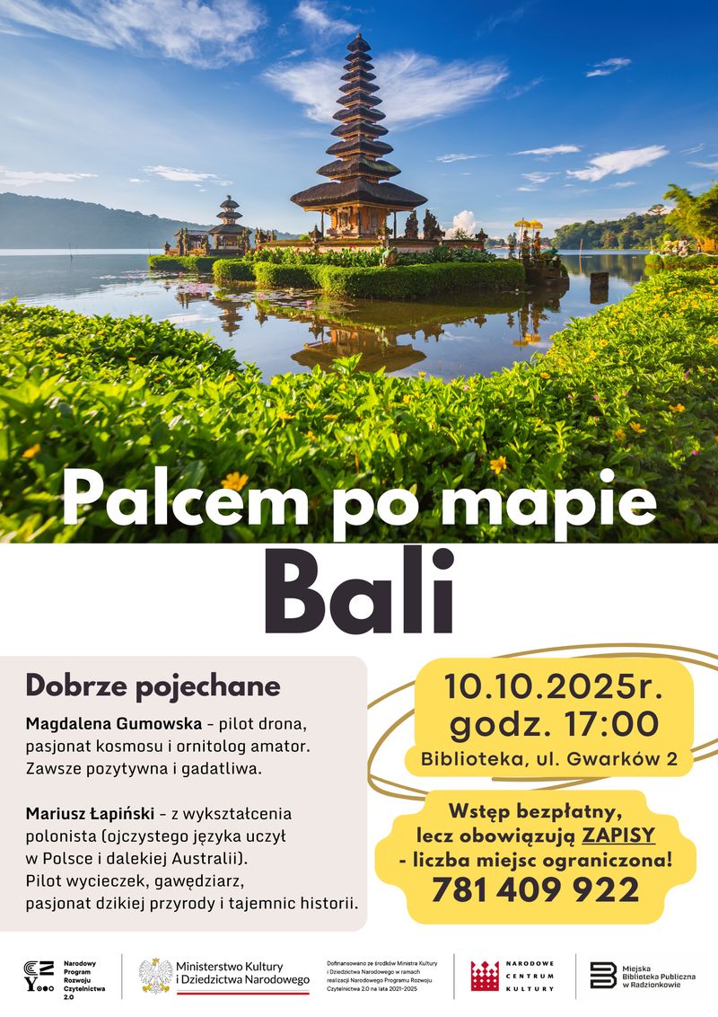 Podczas drugiego spotkania będzie okazja aby wysłuchać pasjonującej opowieści o indonezyjskiej wyspie Bali. Prelegentem będą Magdalena Gumowska - pilot drona, pasjonatka kosmosu i ornitolog amator oraz Mariusz Łapiński - pilot wycieczek, pasjonat dzikiej przyrody.