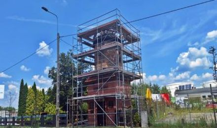 Na terenie Mini Skansenu przy ulicy Nałkowskiej stanęły rusztowania służące członkom Klubu Emerytów Górniczych do prac renowacyjnych przy Kaplicy Św. Barbary.